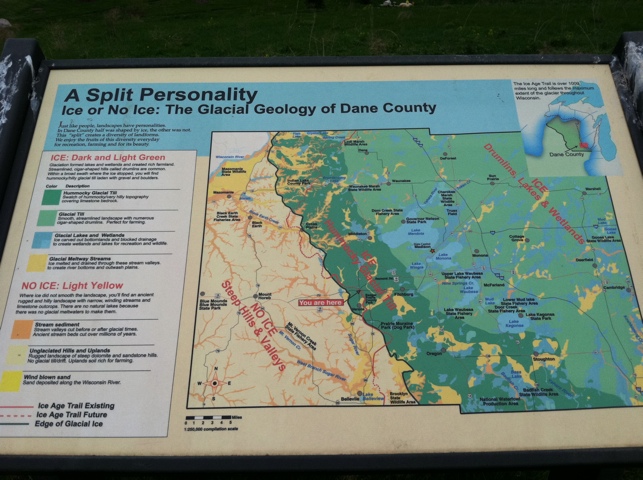 The signs below attribute the terrain to glaciers and the lack of glaciers. One sign says that the area once was covered by ice. Look at it now.