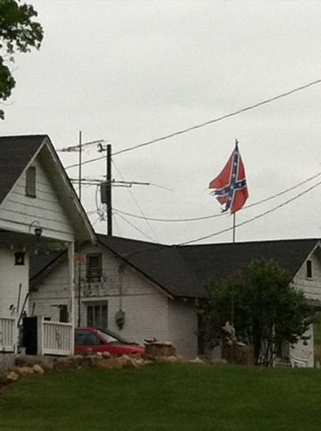 Not far past Greenville, we passed little run-down houses, at least two of which were flying the Confederate battle flag. What the flag represents to its owners, we can’t say.