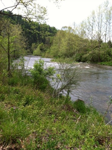 Marie said that a sketch (words or drawing) is OK. Marie is short, wore one heavy glove on the hand that held Smokey’s leash, wore a brown knitted cap over a pink “hoodie” with the hood on her head, and was missing quite a few teeth. Jeffrey told her about our Ride. She was warmly supportive. Marie said there are good and bad people in every group, including citizens, foreigners, and every religion; we all must help one another; no one has all the answers; a friend who likes to call herself a good Christian is actually unkind; many years ago, she stopped dating a man when he told her that he made extra money in his auto mechanic business by falsely telling customers they needed work done; she had lived on this land (in Natural Bridge) since her mother bought the place in 1950 after Marie’s father was killed; she has no electricity and doesn’t want it; Smokey only bites if she tells him to; and more. Her house – if one can call it that – reminded us of how very little one needs. Marie said she always liked nice clothes, but never cared much for houses. She is not well supplied with either.