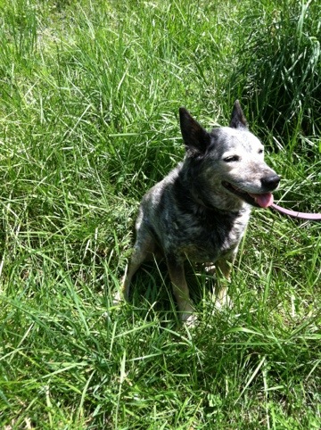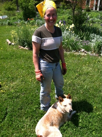 A mile or two away, we met Marilyn, who called out as we passed and offered us water. That’s Roscoe at her feet.