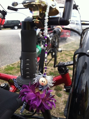 When Jeffrey came out of the park museum, he found this doll hanging from the Sprint’s brass bell. It probably was a gesture of encouragement. Jeffrey rehung it from our flagpole.