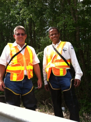 These gentlemen were inspecting a bridge a short distance from the state line. The man on the left was originally from Westchester County, NY. The man on the right grew up in Key West, FL. They gave Jeffrey the good news that Florida largely confines rumble strips to Interstate highways, where human powered vehicles are forbidden anyway.