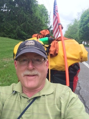 Eva drove past Jeffrey on the road, with a honk and a wave. She called out to Jeffrey when he passed the gas station at which she was filling up. Eva talked about her education as a dietician, and how she became a special ed school aide when her son was diagnosed as autistic. She volunteered that her Portuguese family had sheltered Jewish refugees during World War 2. She is very interested in human rights issues of all kinds, and honored Jeffrey by asking him to take a selfie of them both.