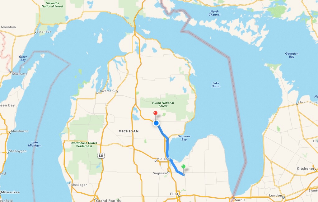 We took our lunch to a county park in Pinconning, where we met a number of locals. Robert, formerly a machinist, told Jeffrey of his health problems, of becoming a widower months before his 50th wedding anniversary, and how lonely he was until he married a widow who had lost her spouse with similar timing. Robert fears that his health issues burden his spouse and needed someone to listen, so we just listened and assured him that he gives his wife the gift of feeling useful.