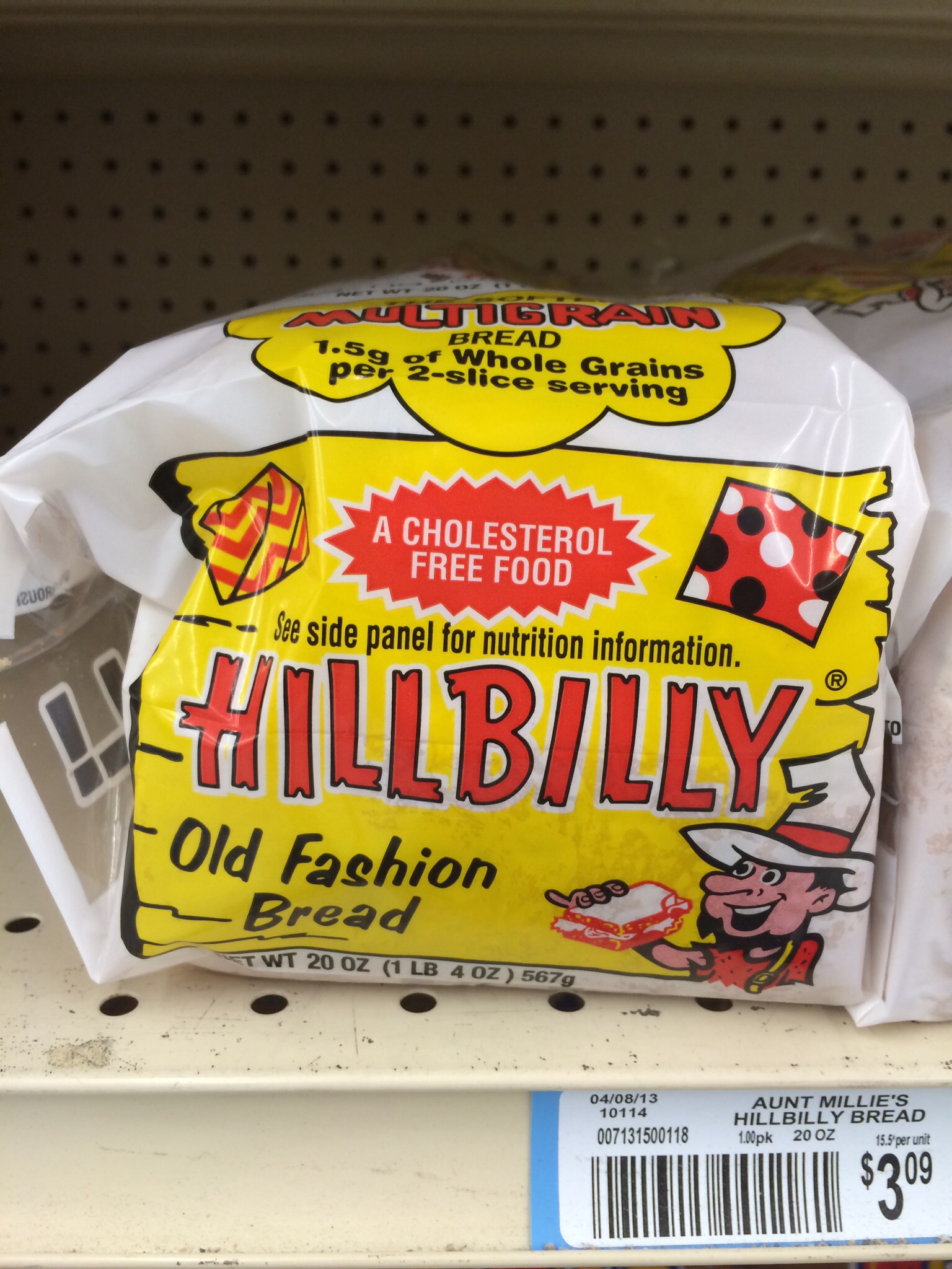 We stopped at a local supermarket. We did not buy Hillbilly Bread but wonder if there is a connection to 1940s Texas pol Pappy O’Daniel’s Hillbilly Flour (see the second volume of Robert Caro’s biography of Lyndon Baines Johnson). Oddly, we do not recall seeing this product on our 2012 Ride to Nashville.
