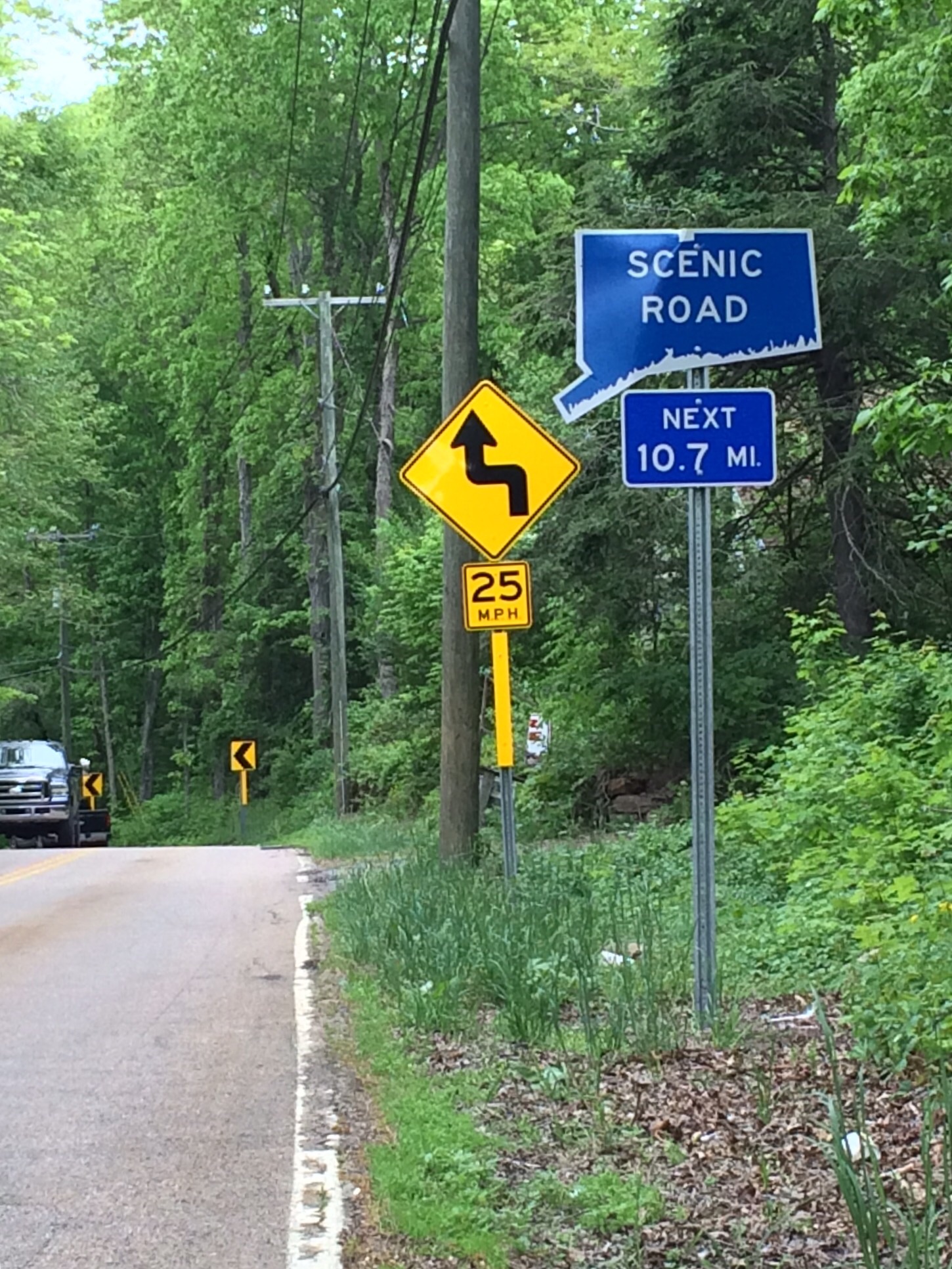 Rhode Island road. I put up with miles and miles of this. Some roads were good, with great shoulders and Bike Route signs, but sand and gravel from winter road treatment made the shoulders dangerous. On some steep uphills – there were many! – my rear tire (on the drivewheel) lost traction and spun.