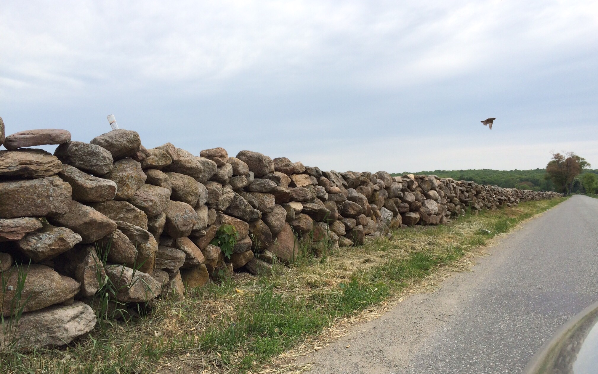 No wonder old time New England farmers were poor. Stone fences lined this Connecticut road and stretched into the fields as far as I could see. The stones were taken from those fields! Note the bird taking wing.