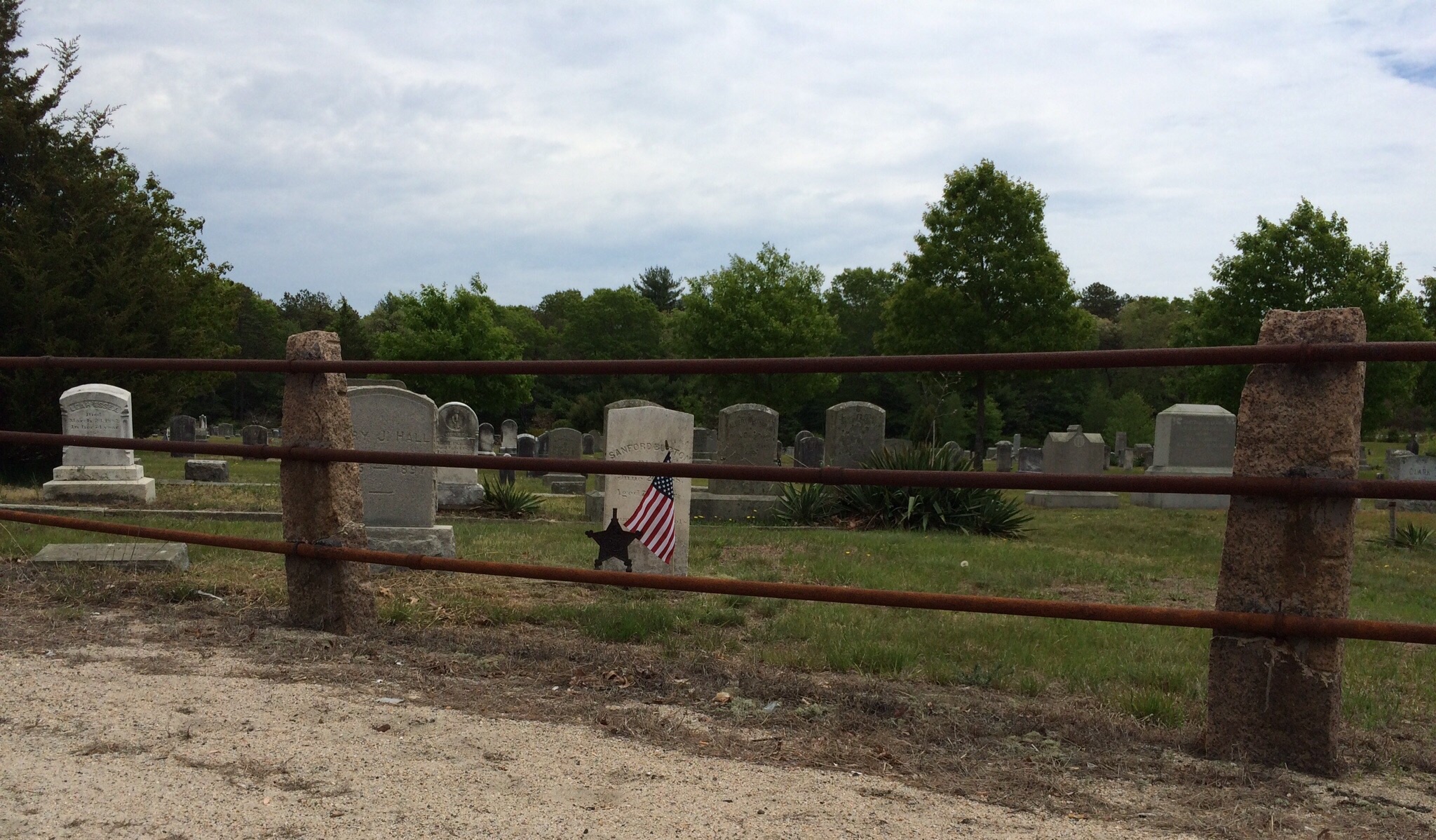 Historic Rhode Island cemetery. The flagged headstone names Sanford Burton, who died 127 years ago at age 78. He had been a drummer for the 9th Rhode Island Volunteers, presumably during the Civil War. Someone carefully placed a flag by his headstone. Mr. Burton doesn’t care, and no living person remembers him at all.
