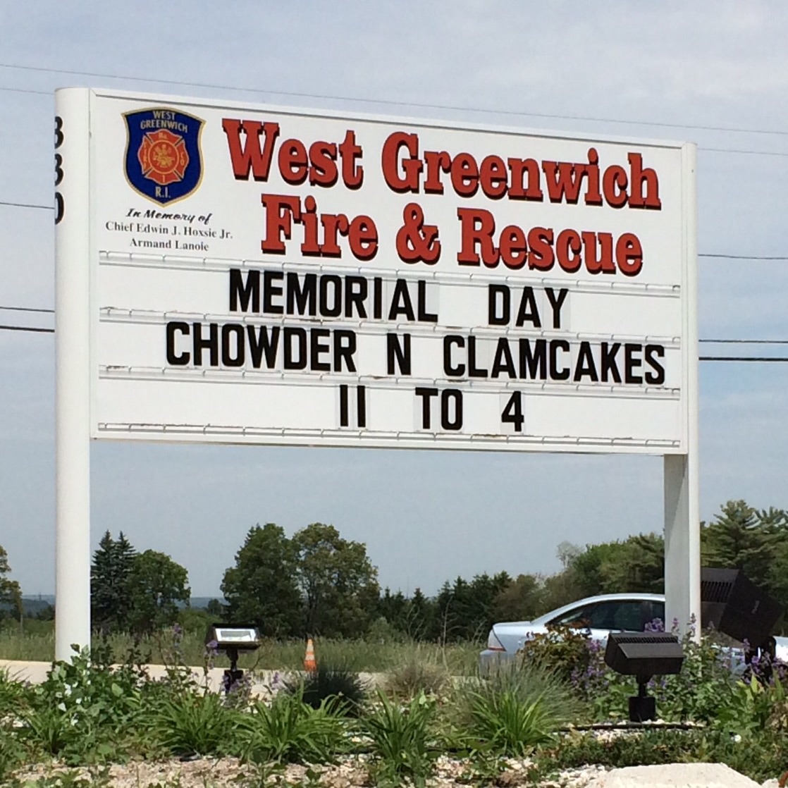 Just past a sign that said “Town Line”, I deduced from parked cars’ license plates that we had entered Rhode Island. Nice boat!
