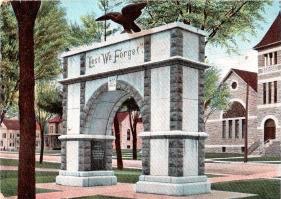 Above you see an old image of the memorial arch in my native village. Among other inscriptions, it bears the names of locals who died in U.S. military service. World War 2 was the first war in which battle, not disease, caused most U.S. military deaths. That’s a big marble arch for a small town.