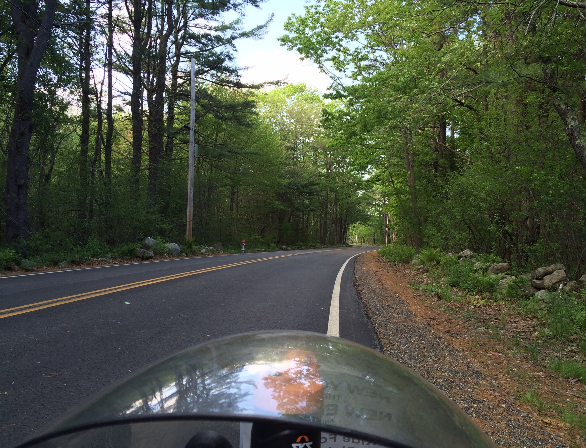 In New Hampshire (here) and Massachusetts, roads were narrow enough, trees broad enough, that much of the road was shaded even in the heat of the day.
