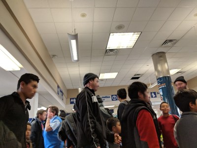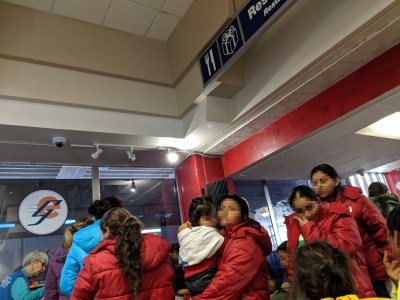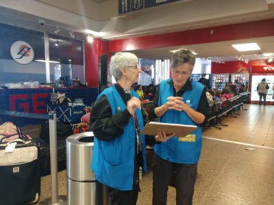 We literally do open our “clinic” once we have taken care of the refugees’ first priorities:  making sure everyone has and understands their tickets, and distributing backpacks and lunches for their journeys. The “clinic” is a well-worn black rolling suitcase that holds plastic organizers of over-the-counter meds.   The mainstays in our formulary are acetaminophen for headaches and inflammation, ginger tablets for nausea, pediatric meds for fever and cough, sore throat lozenges, and the highly appreciated Vicks VapoRub.  It is very rewarding to be able to help relieve physical pain, and to reassure each nervous parent that we are able to do something for their child’s worrisome fever or cough.  Our goal is to get them to their destination as safely and comfortably as possible.