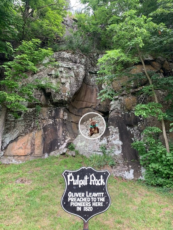 Just outside Oxbow. Joey, high on Pulpit Rock, is magnified.