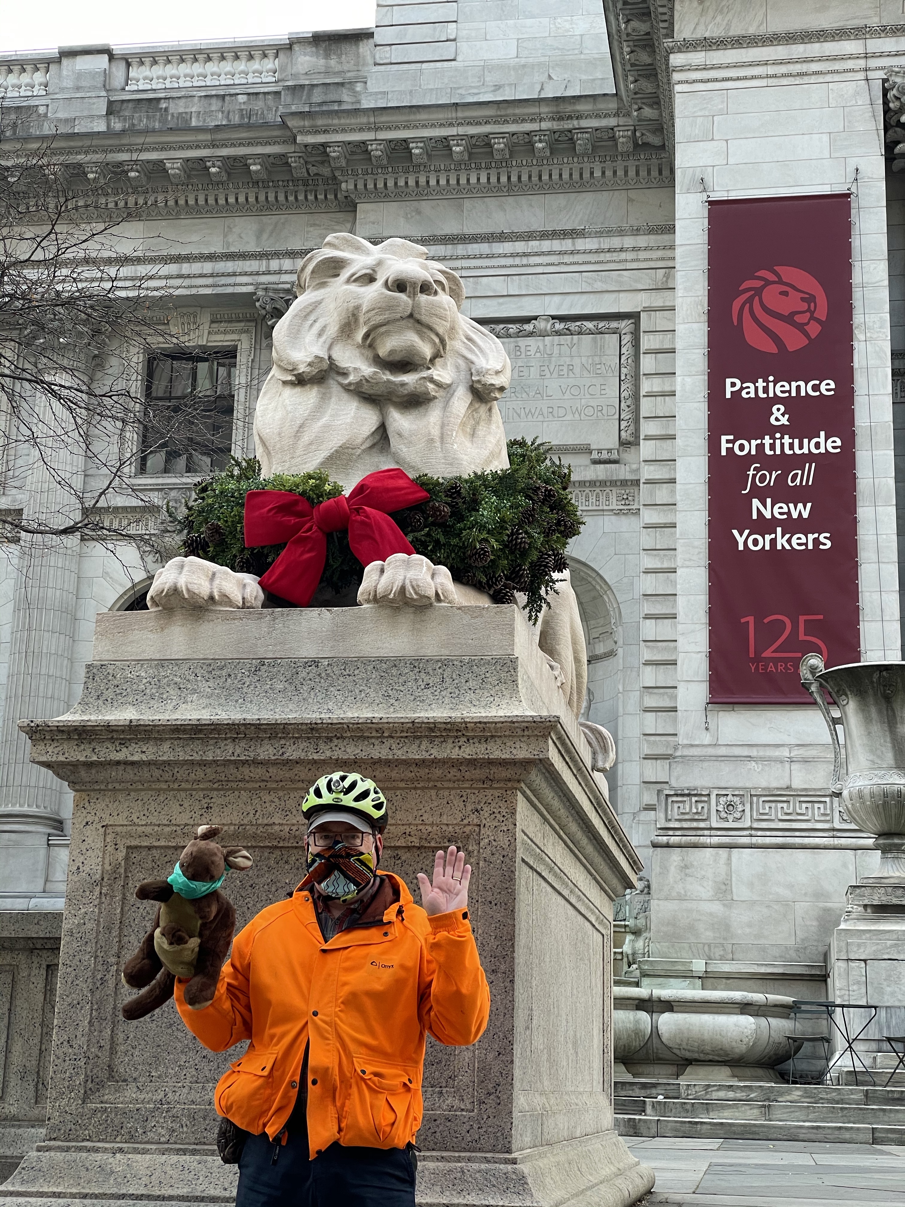 With “Patience” at the New York Public Library. A few feet to the north is the other lion, “Fortitude”.