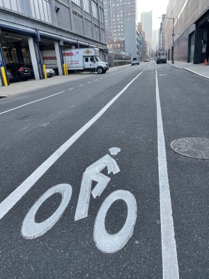 Later we biked to Times Square. Before the pandemic, pedestrian tourists swarmed its bike lanes.