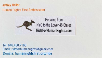 Matt admired our bike and reminisced about driving in Utah (to which we hope to bike in the coming months). Jeffrey gave Matt one of our calling cards.
