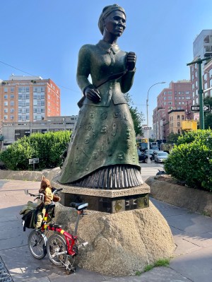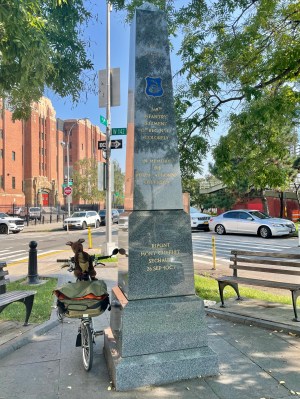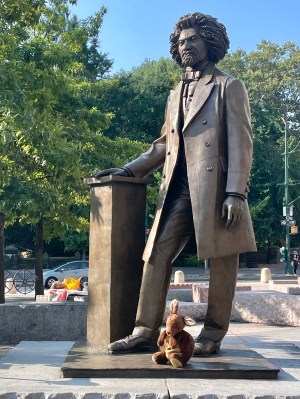 En route to the Hellfighters monument, Joey and I stopped at a statue of Frederick Douglass, at W. 110th Street.