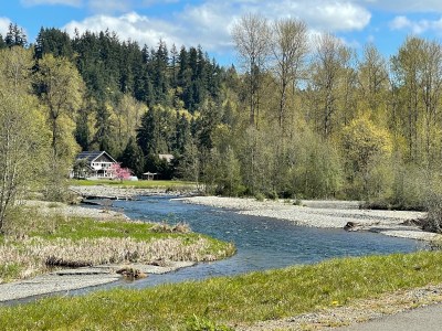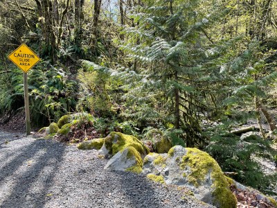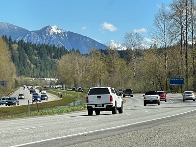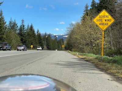 Today’s dry weather was a help. With 46 miles of ups and downs, we climbed a net 680 feet (207 meters) from sea level into the Cascades.