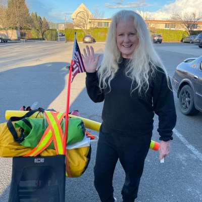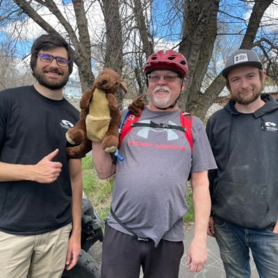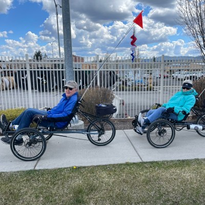 Erik (L) and Kris (R) at the hardware store in Davenport. Kris spent years as a bicycle messenger in Seattle. He repeatedly was battered by cars, but unlike Jeffrey, broke no bones cycling. Yet.Dale is a retired publisher who volunteers at the Inland Northwest Rail Museum.Dale published this book.L to R: Matthew, Joey, Joey’s joey, Gary, Preston. Gary, a Navy veteran and recently retired car upholsterer, called out to Jeffrey and gave him excellent route advice for our trip to Coeur d’Alene, where Gary was born. Matthew and Preston maintain a section of park in Spokane. All three are enthusiastic supporters of human rights for everyone and are new fans of the Ride.Bob is a retired supplier of petroleum fuels. Carol retired as a public librarian in a small Montana town; she had an earlier career as a medical technician. We talked trikes and Montana and human rights.Another trike fan! Ron (L) and Sandra (R) pointed out a flying osprey. They shake their heads in wonder at people who make a living from unauthorized immigrant workers at the same time they call for billions to be spent on a (demonstrably destructive and ineffective) border wall. Sandra was a real estate analyst before she became a third grade teacher. For a quarter century, Ron sat at the controls of the Grand Coulee Dam.L to R: Natalie (a baker, B&B host, ski patroller, substitute teacher, and more), Candy (a grandmother and retired nurse), Karen (a grandmother and a farmer). Karen called out to Jeffrey, thinking that our keep-your-distance pool noodle was falling off our trike. (We deliberately set it 3 feet [1 meter] to the left.) The three friends are fascinated by the Ride, and appalled at our government’s cruelty and lawlessness (done in our names) that make the Ride necessary. We exchanged ideas and cycling advice for a long time.Mark is a mechanical engineer. He gave us warnings and suggestions about the route into Montana. He’s holding one of our Human Rights First Ambassador cards. Jeffrey told him how much he admires mechanical engineers: they make actual things.Bureaucratic inflexibility prevented us from renting a room where college student Kayley works. While waiting for computers to sort things out, Kayley told Jeffrey that northern Idaho was painfully homogeneous when she was growing up. She said people of different backgrounds are moving here, and she is all for it. Kayley is studying to become a high school teacher of art and English. She may take her skills elsewhere, at least for a while, for adventure and perspective. We understand. Adventure and perspective are part of the Rides.Joan is sympathetic to refugees, and can’t bear to talk about a government that fights with itself rather than hammer out solutions. She’s holding one of our cards.Mike moves around the country, from Minnesota to California to New Hampshire to Idaho. He used to work with software. Now he serves restaurant food, which gives him time to restore a 1980 Jeep. Mike wants us to follow our laws and the religions in which we say we believe, and hear the voices of those who want refuge.
