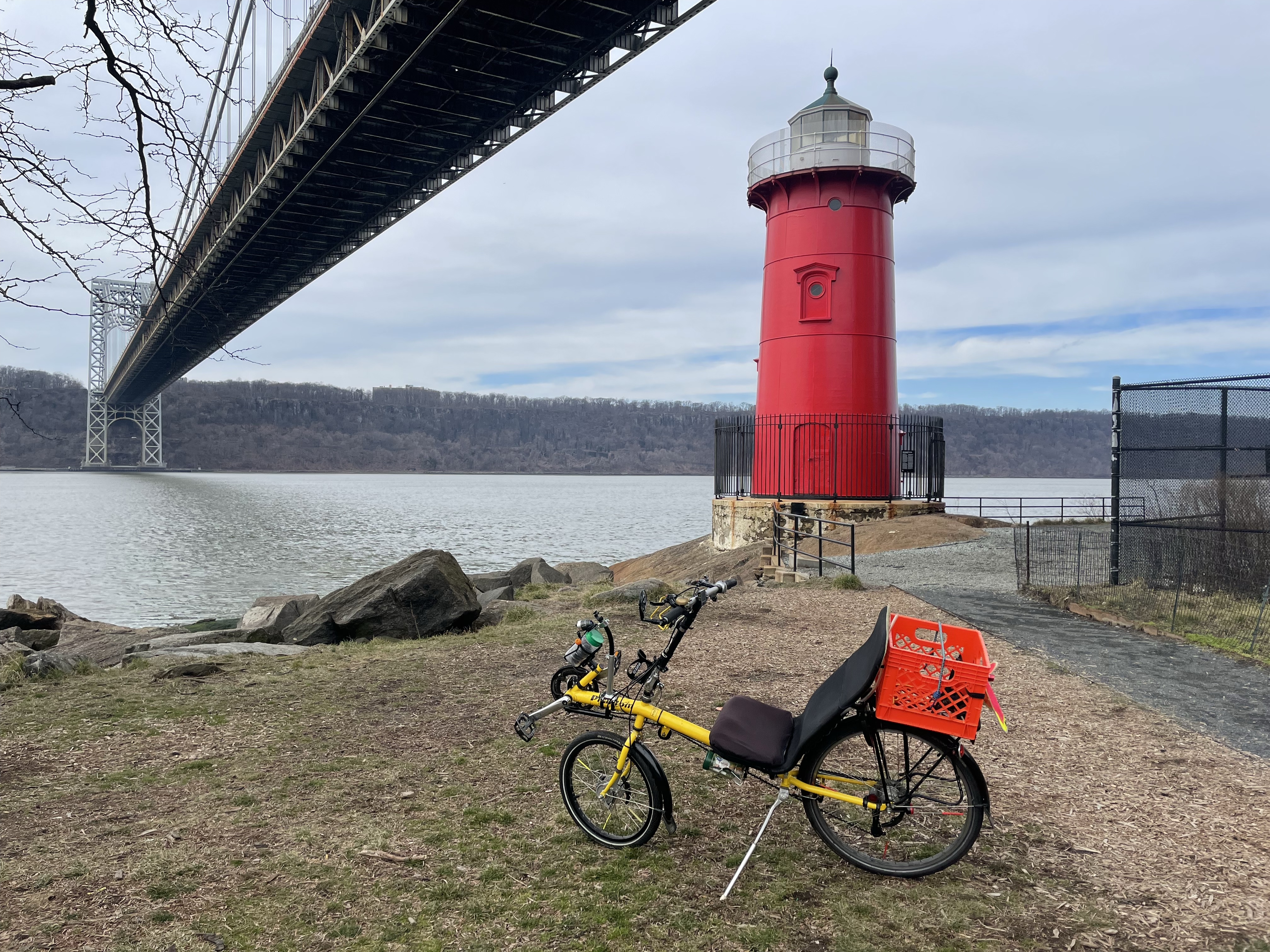 On a recent conditioning ride, soon after we paused at Jeffrey’s Hook (see photo above), our bike’s rear axle shifted in its mount. The rear wheel froze. Foolish Jeffrey had brought no tools. We were 6 miles from home.