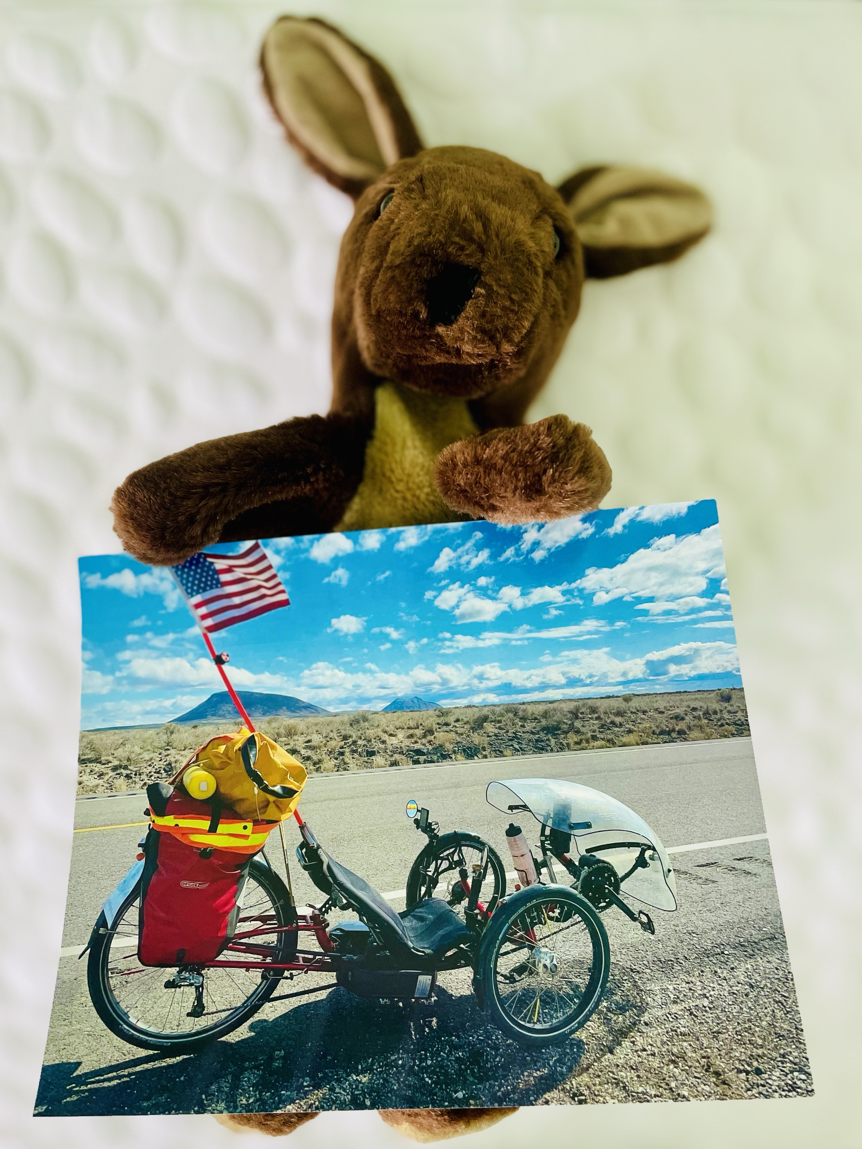 … to strengthen his legs to propel our recumbent 3-wheeler at a reasonable pace after an 11 month hiatus. His warmup makes starting a Ride doable. Travel gets easier as he hardens to the road.