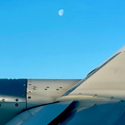 Morning moon off Rockaway Beach, after takeoff.