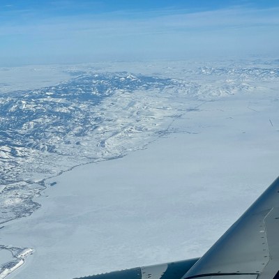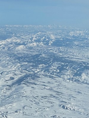 We flew over forests and farms, lakes and mountains.
