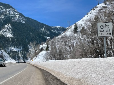 Scott and Kim warned us that the Ogden Canyon road was narrow and winding. We pulled over to let motorists pass whenever the shoulder widened. Motorists drove gently. We didn’t feel afraid.