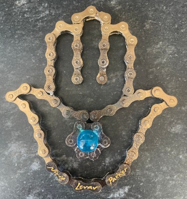 Asher and Mona gave us a cyclists’ hamsa for good luck on the road.