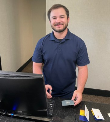Carson, holding our calling card, helped us get the best possible rate for the first night of our 13th annual Ride.