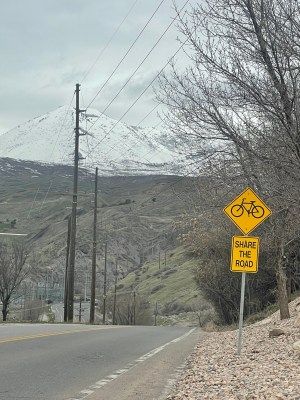 Do such signs make us safer? At least they inform motorists that we belong. Only one motorist today—in a diesel pickup truck that blew us some “rolling coal” black smoke—had an issue with that.
