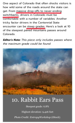 Rabbit Ears Pass made a Top Ten list. Reaching it took us a thousand feet (300 meters) higher than Walden, to which Masi (thank you again!) brought us.