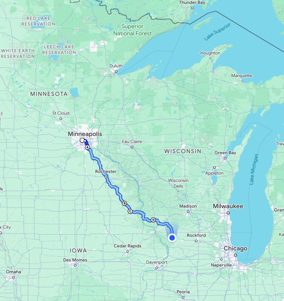 Six hours into our journey, as we left Wisconsin, the rain paused.