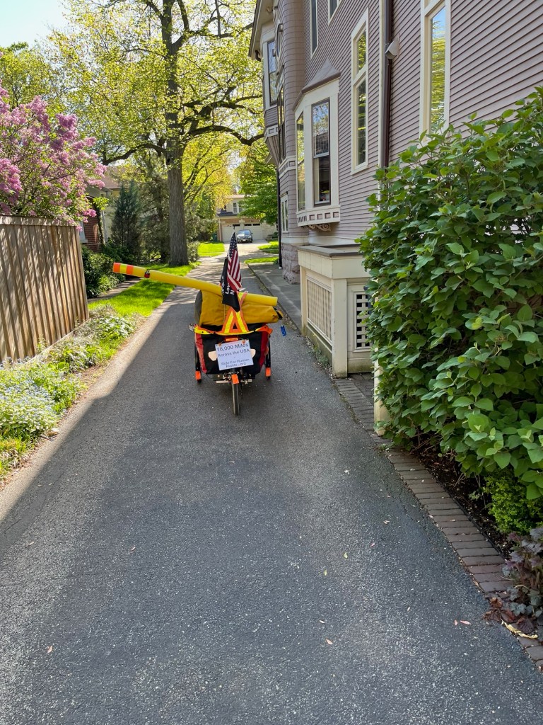 Some of the Indiana roads are scary: concrete curbs, rumble strips, narrow shoulders or none. Evidently their laws aren’t very protective of cyclists. Drivers gave us little clearance. One driver yelled at us to get on the sidewalk—although soon after, we saw a bicycle sign, meaning that we had the right to be on that road.