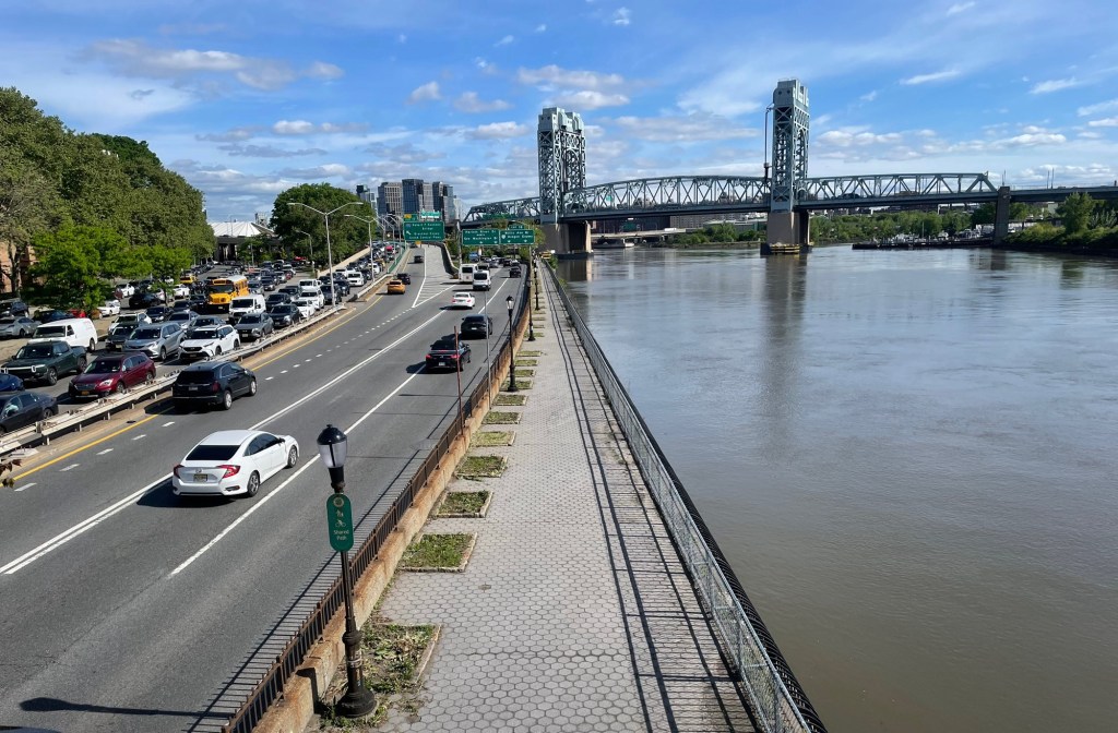 View from a pedestrian/cyclist overpass by the Harlem River.