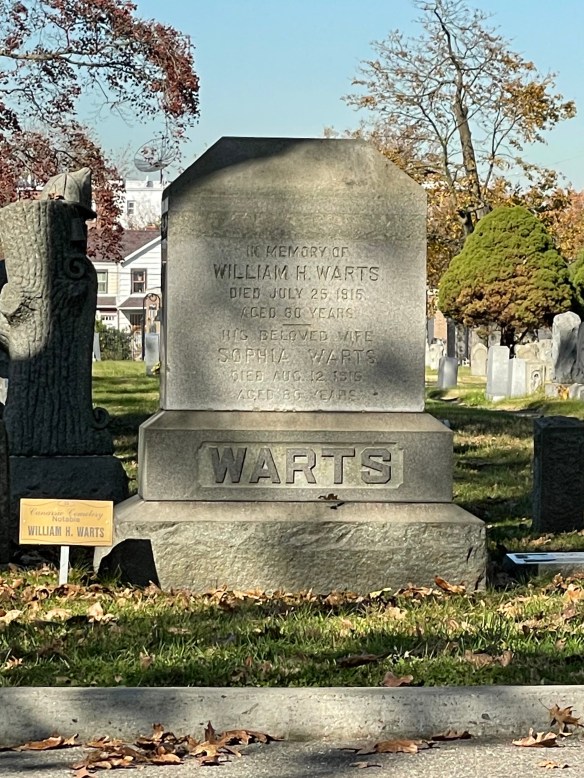 This streetside monument in Brooklyn’s Canarsie Cemetery caught Jeffrey’s eye. “Notable” Mr. Warts was a U.S. Army Signal Corps officer during the Civil War. Later he become a justice of the peace.