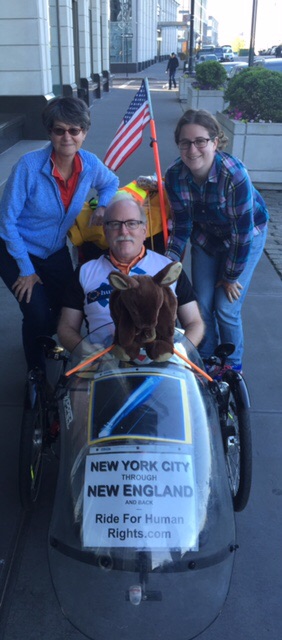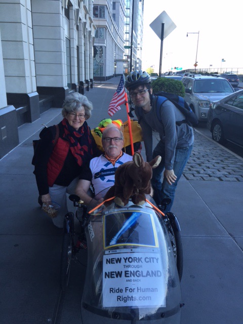 Tired though we were, at the Stony Brook train station where we asked directions to our hotel, we met Camilla, a Chilean dentist; Francisco, also from Chile, earning a Ph.D in applied math; and Lisa and Robert, who had come to meet their son at the station. We had a nice chat about immigration, asylum, cycling, bureaucracy, dental care, human rights, and Human Rights First.