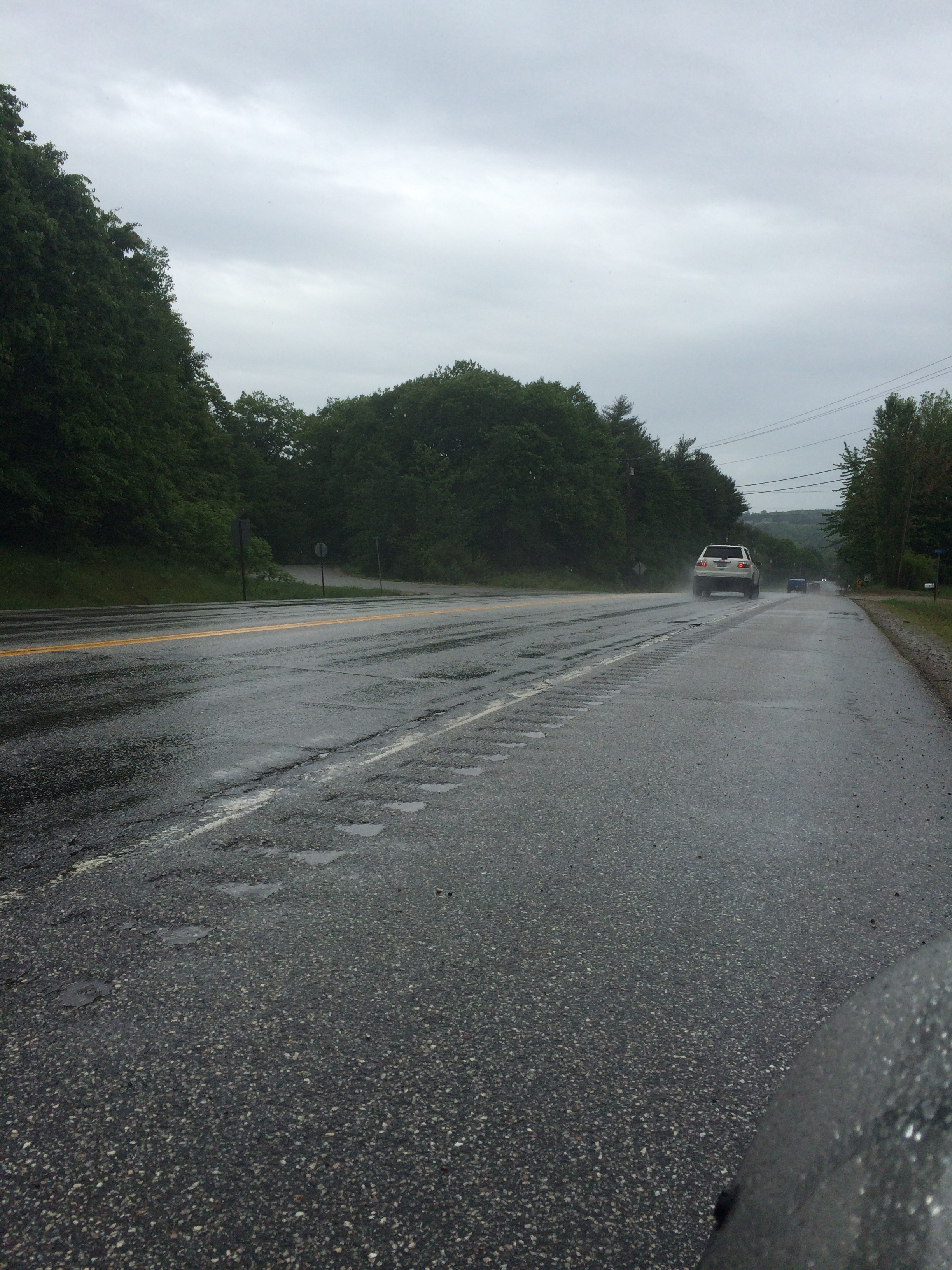 Sometimes the shoulder was better than the driving lane. Note the rumble strip between us and the cars.