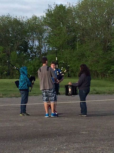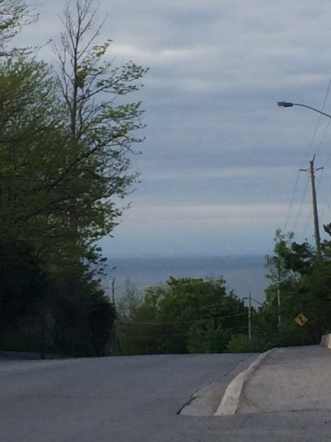 We stopped at a house to ask directions. Eric and his son helped us find the nearest motel, in Grimsby. En route, racing nightfall, by some kids practicing with drum and bagpipes, we paused at the edge of the high Escarpment that surrounds Lake Ontario and caught a glimpse of Toronto, far away across the narrow western bit of the lake. Tonight we’re back on Lake Ontario’s southern shore after a long, full day.
