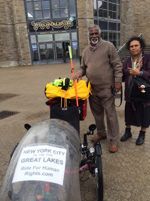 Jonnie, from China, handed Jeffrey a donation. Aura and her mom, from Venezuela, said they will donate on line. Kasim, a respiratory therapist from Windsor, ON, who treats sleep apnea, said our adventure inspires him to bike, and to donate also.