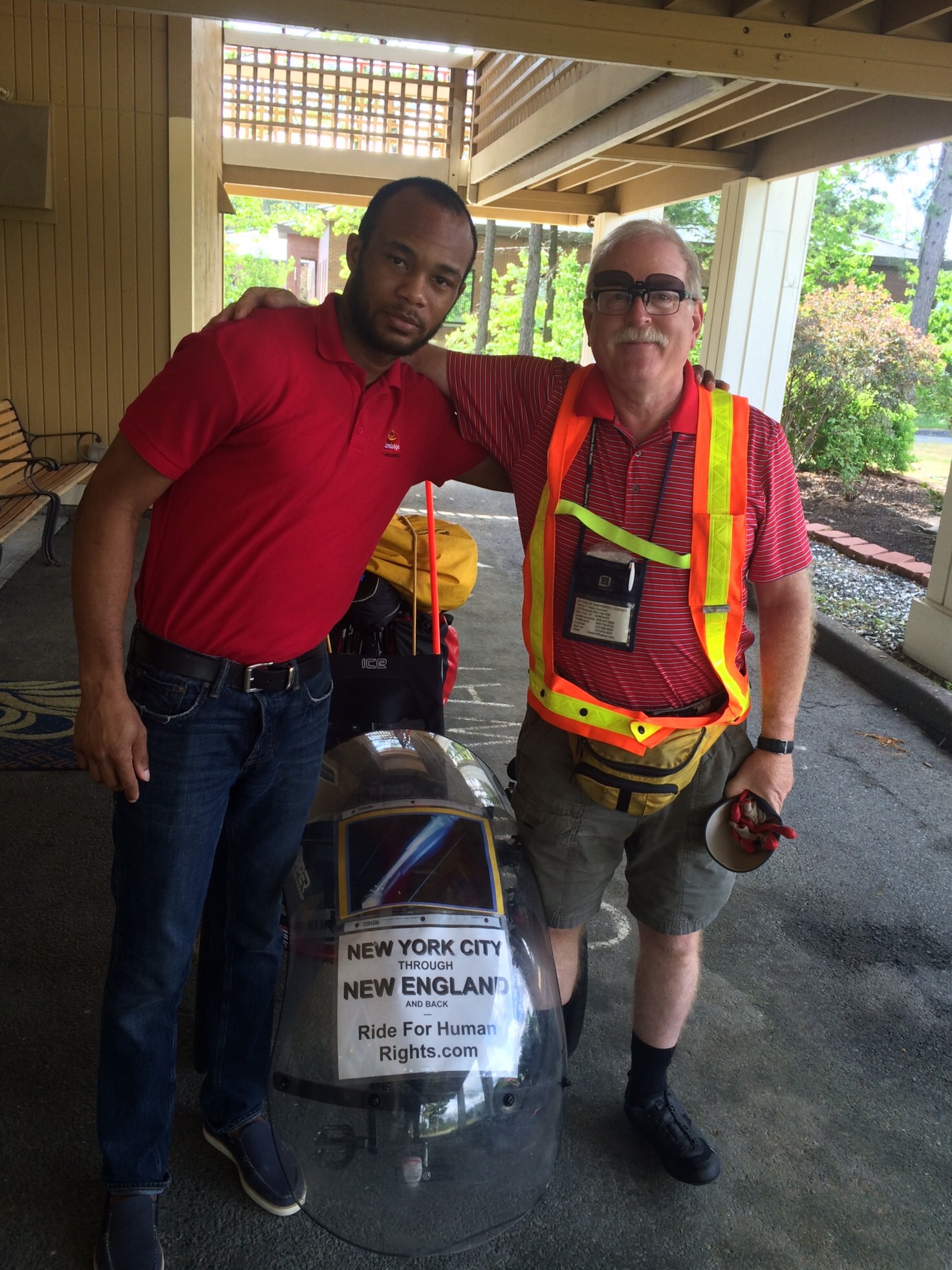 Thomas’s grandmother was 100% First Nations (American Indian) ancestry. Thomas grew up as an orphan in the Maryland child welfare system. These factors make him bitter. He remarked at our Ride For Human Rights sign, that humans should have no rights, that it would be better for the rest of creation if we disappear. He thinks our disappearance is imminent. Thomas has particular venom for the immigration system; he said his ancestors pitied the inept European invaders, gave them food and advice (the Thanksgiving story), and look what happened! Jeffrey, who has written of the irony that the descendants of unauthorized European immigrants make rules about who is allowed to follow them into a land they have no special right to occupy, expressed his understanding and sympathy.
