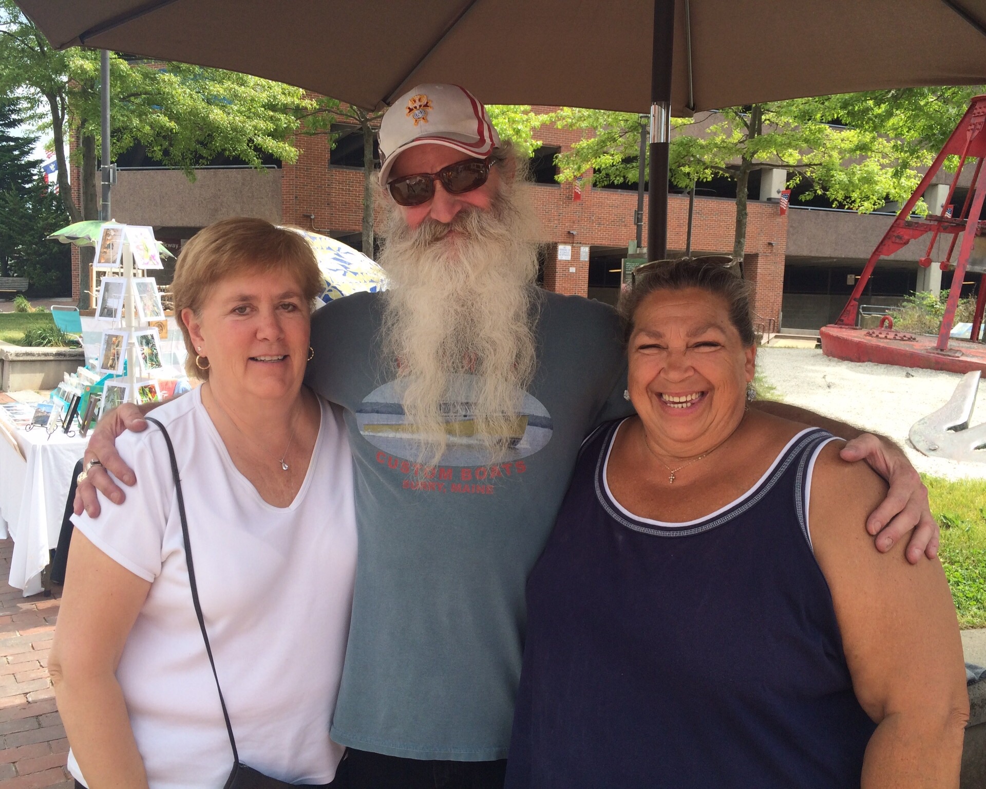 Nancy is a photographer, Conan an author, Crystal a jewelry maker. They were selling artworks on the sidewalk. They came over to shake Jeffrey’s hand and gave him warm encouragement and travel advice.
