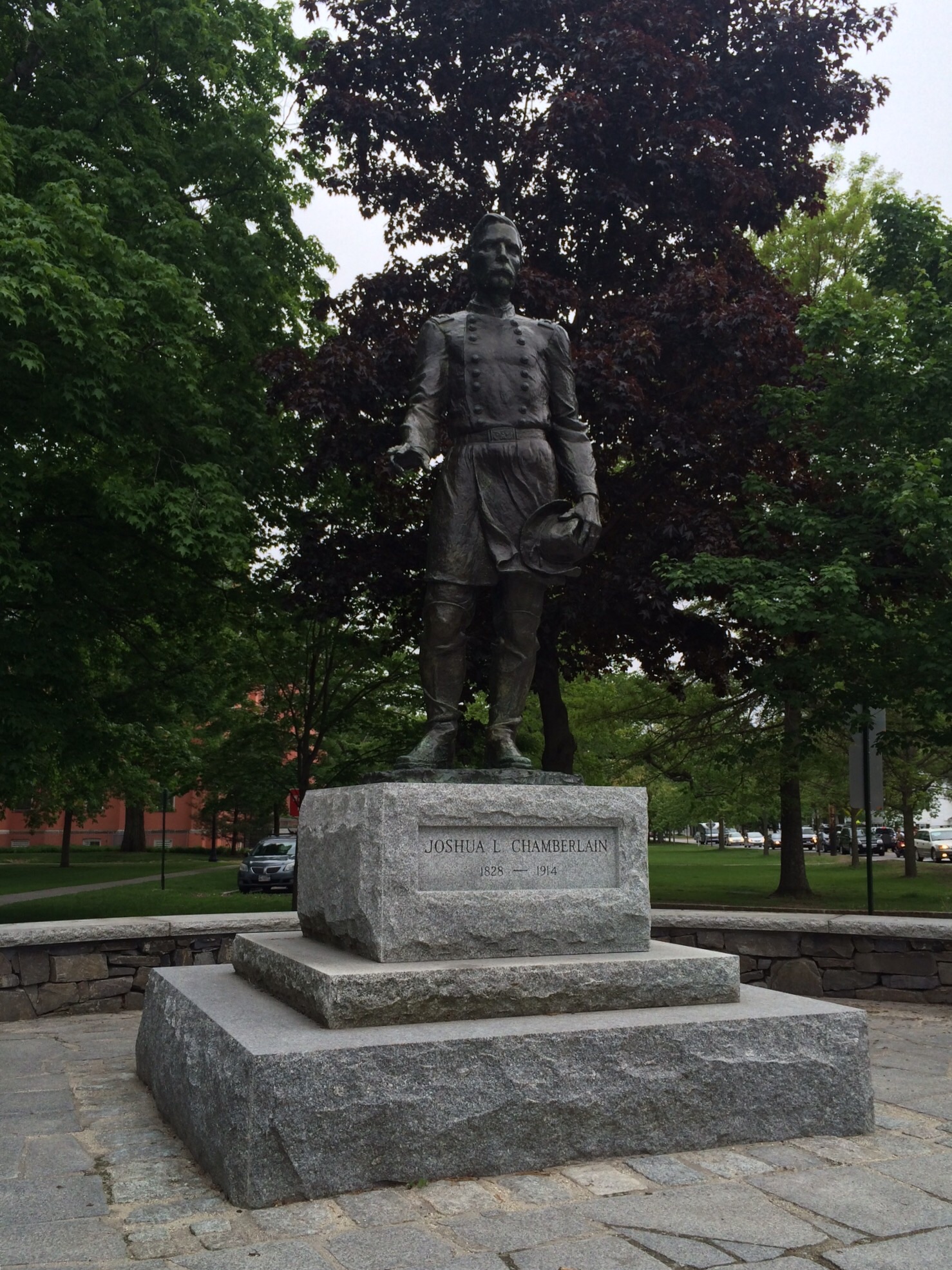 We passed the Bowdoin College campus in Brunswick. Joshua Chamberlain, whose leadership at Gettysburg kept Little Round Top from falling to the rebels, still guards the gates, attended by a Memorial Day flower arrangement (not shown). After the Civil War, Chamberlain was governor of Maine and was a professor and president of Bowdoin.