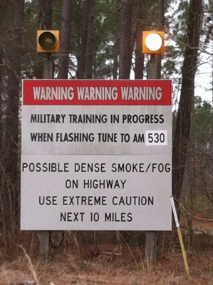 We emerged from Jacksonville and headed toward Wilmington. Soon we heard booms and saw these signs.