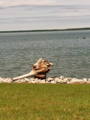 We passed the Rodman Reservoir, created by the Kirkpatrick Dam on the Ocklawaha River. Note the tree trunk “driftwood” resembling a dinosaur thigh.