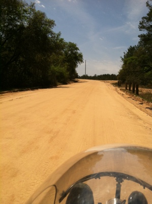 Soon we turned onto a Forest Service road into the Ocala National Forest. The first five miles was gravel in an asphalt matrix. Paved, yes. But look how rough! The rolling resistance was very high. The same effort that kept the trike at 7 mph would propel us at 14-16 mph on smooth pavement.