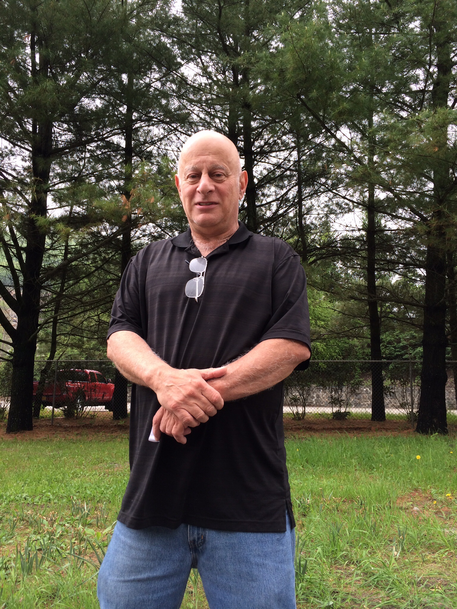 Pat grew up in a Chicago suburb. He in sympathetic to refugees and has put a Joey Goes to the Great Lakes sticker on his shirt.