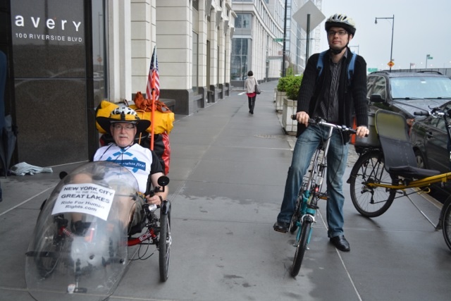 L to R: Jeffrey, Daler. Daler saw us to the NJ side of the George Washington Bridge, helping us carry the trike up and down 6 sets of stairs; now, that’s a friend! The path with a ramp was being repaired.