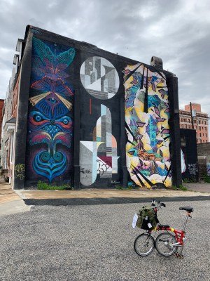 Our folding bike and a Baltimore mural.