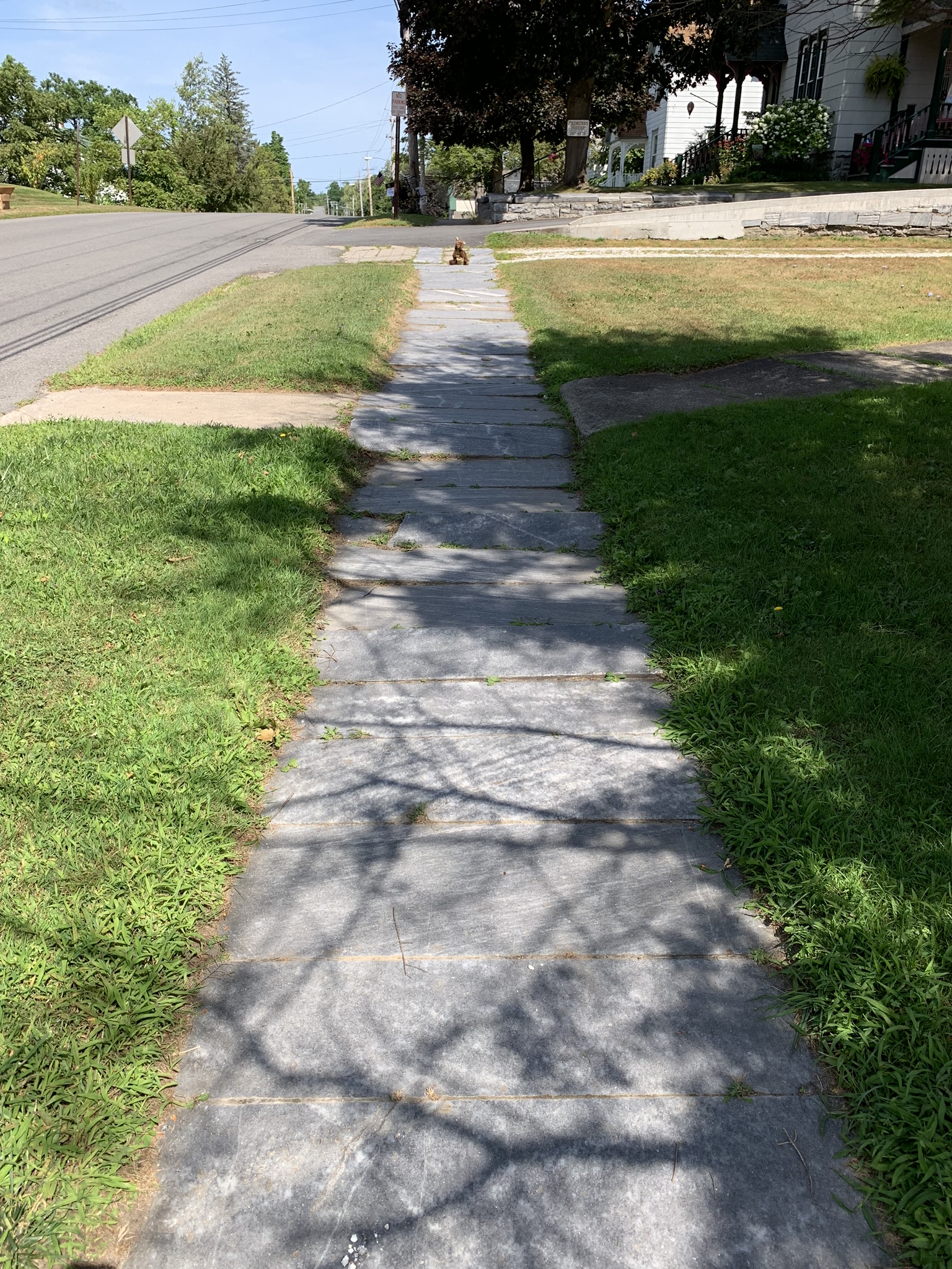 Jeffrey’s mother roller-skated here. (The sidewalk, of local marble, may be over a century old.) I’m up the hill, for scale.